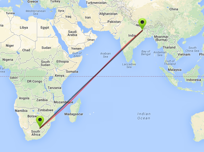 I logged 5,391.9 miles, which is the distance between Free State and Bakhtiyarpur, if you were wondering.